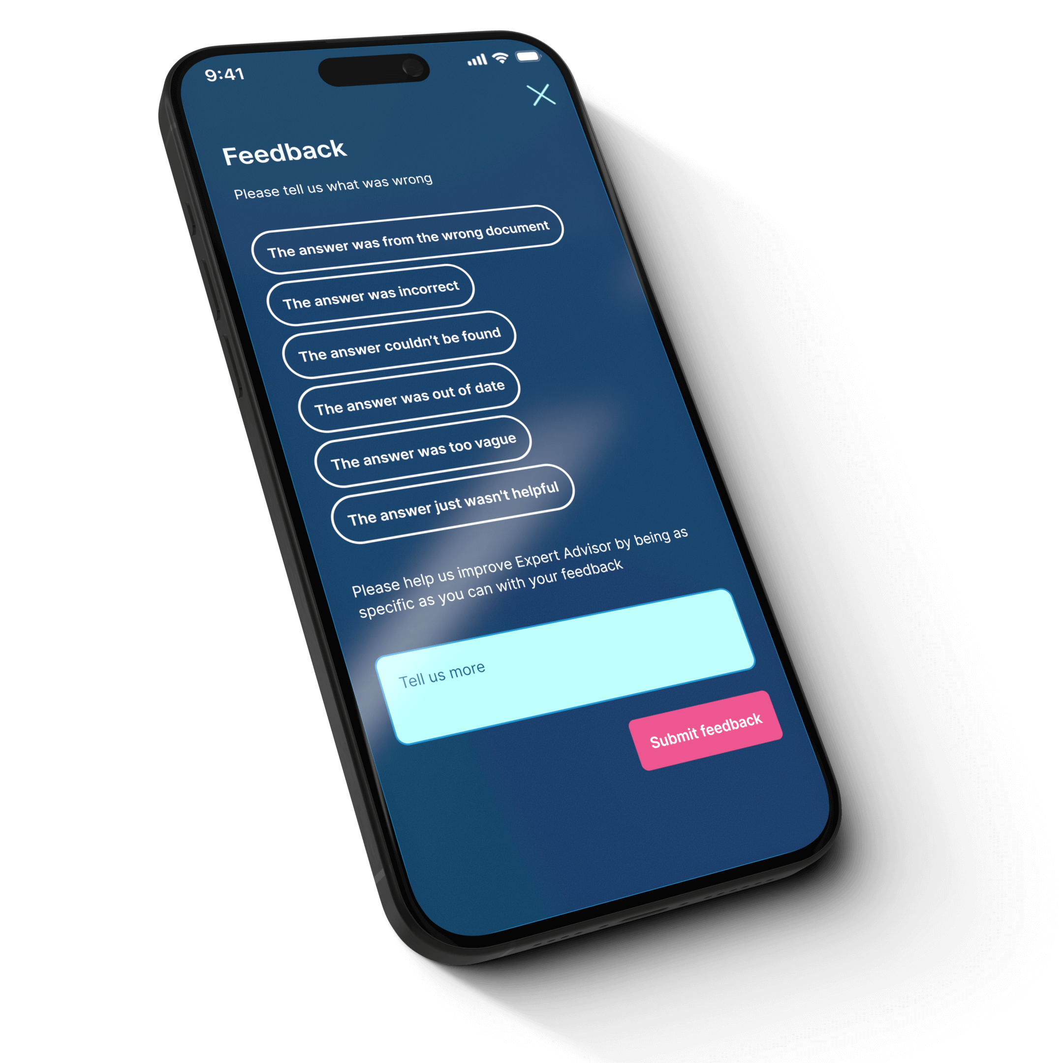 Expert Advisor wasn’t designed in a meeting room. It was designed around real constraints — noise, pressure, downtime, and hands-on work. The team made a deliberate choice: No complex workflows. No generic AI answers pulled from the internet. Instead, Expert Advisor would only speak using a company’s own knowledge — manuals, reports, procedures, and the unwritten experience of its people. Engineers could ask questions in plain language and get concise, relevant answers they could trust.The product didn’t try to replace experts.